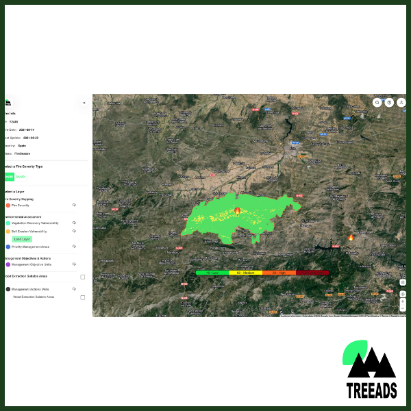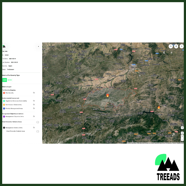 The Decision Support System for Adaptive Postfire Management (DSS-APM) Restoration Module refers to the conceptual development of an adaptive post-fire management system. Operating through distinct phases, it establishes a protocol for using remote sensing with drones. It actively collects crucial open satellite data and analyses fire severity, constructs a severity index, assesses environmental vulnerability in burnt areas at both soil and vegetation levels, and generates management map areas regarding the analyses. The DSS incorporates a capsule drop notification system, empowering users to alert authorities of capsule drop and provides a visual representation of the capsule’s location.
